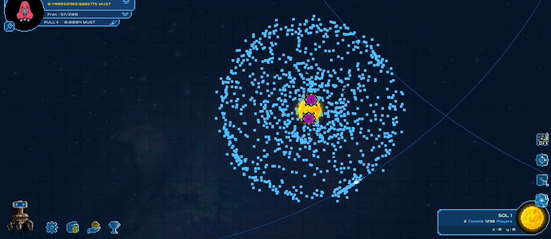 Le but est d'extraire des tokens des comètes, les déplacements se font en utilisant les autres vaisseaux de la galaxie