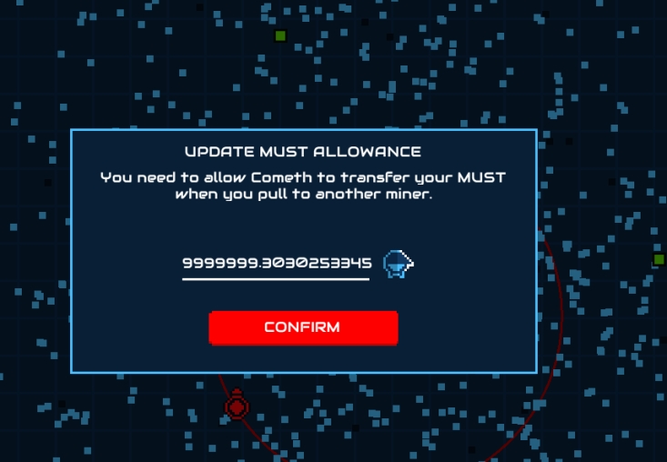 Vous devez ensuite paramétrer votre ''Must allowance'' en cliquant sur l'icône avec une main en bas à gauche de votre interface, et décider de la quantité de Must que vous autorisez Cometh à utiliser