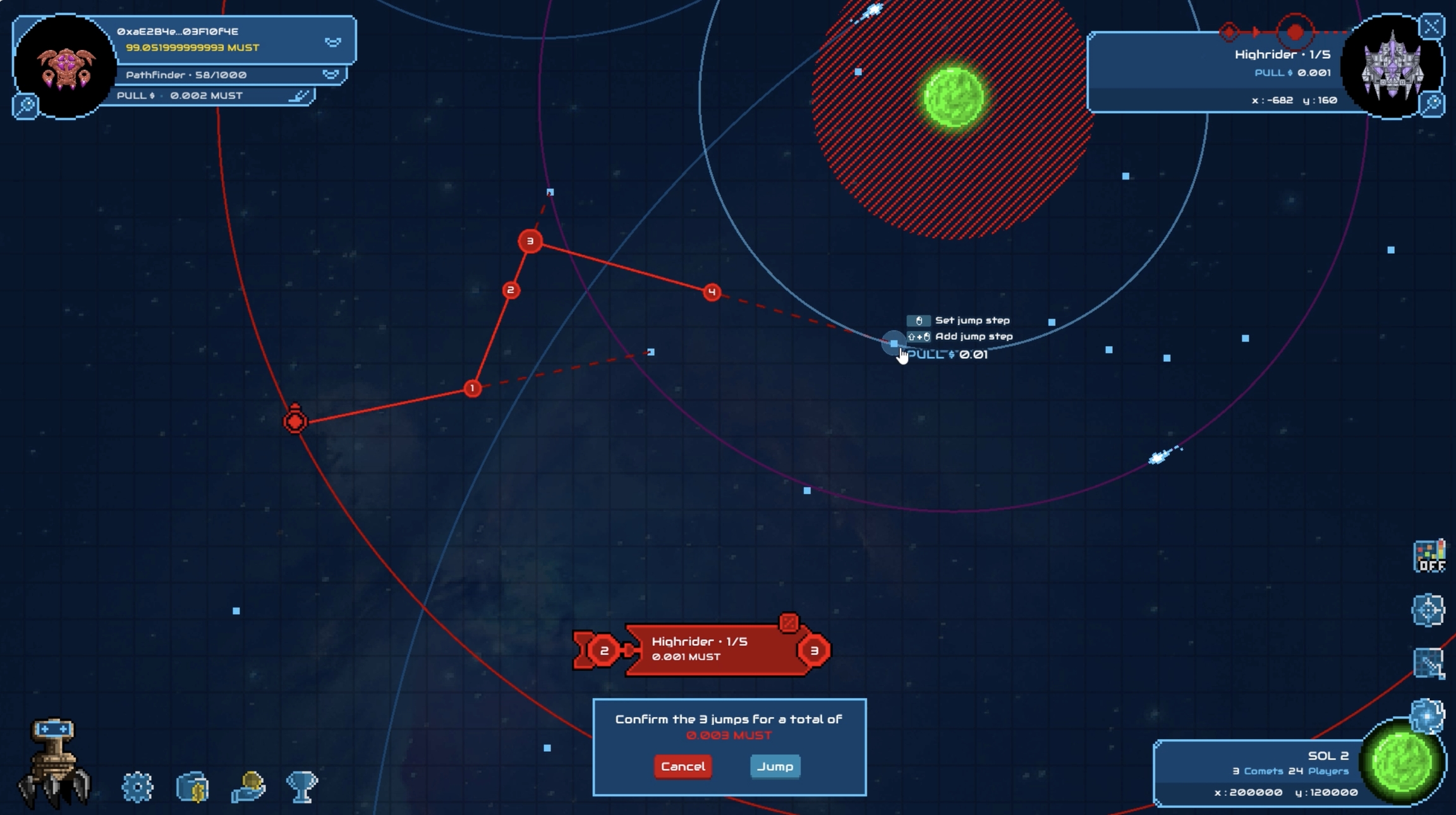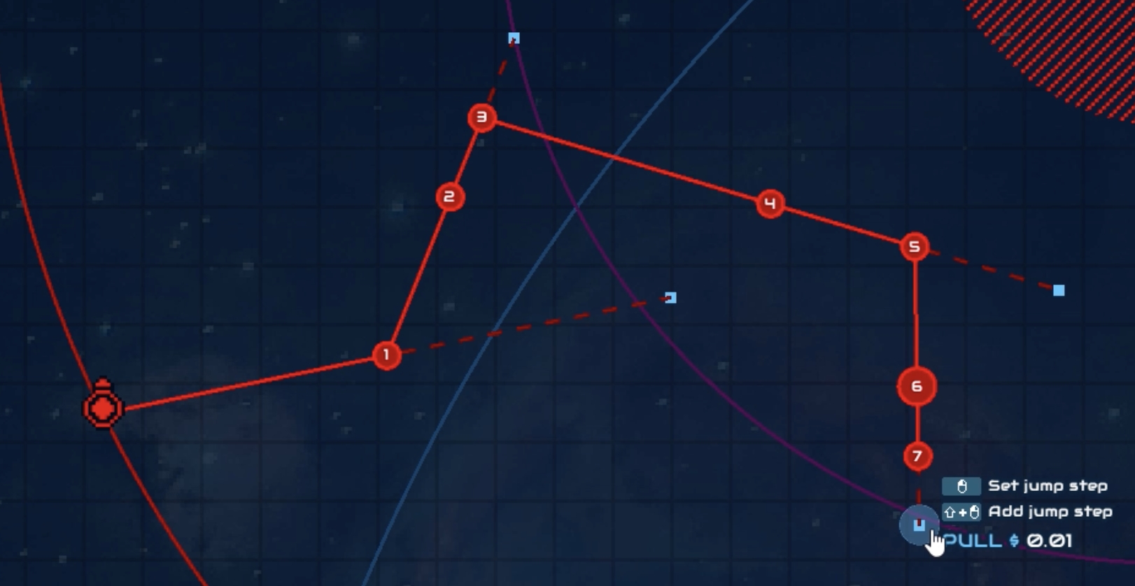 Appuyez sur SHIFT, et cliquez une seconde fois sur le vaisseau cible, répéter l'opération autant de fois que de sauts que vous voulez ajouter